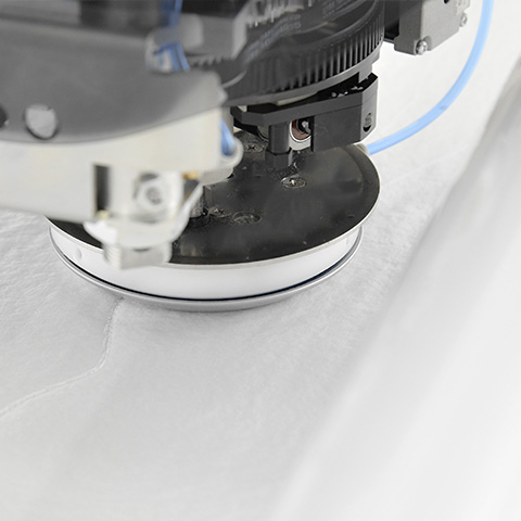 従来の手作業ミシンでは縫いにくい、丸や星などの様々な形を素早く自動で縫うことが出来ます。